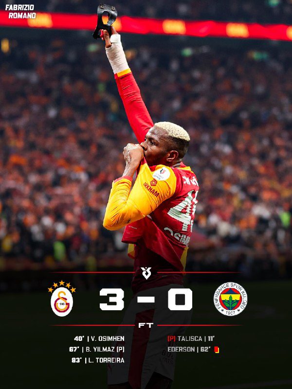Стамбульский Галатасарай одержал убедительную победу над своим принципиальным соперником Фенербахче, забив в ворота оппонента три безответных мяча. Этот результат позволил подопечным Окана Бурука укрепить свои позиции в турнирной таблице турецкой Суперлиги и сделать важный шаг к чемпионскому титулу.